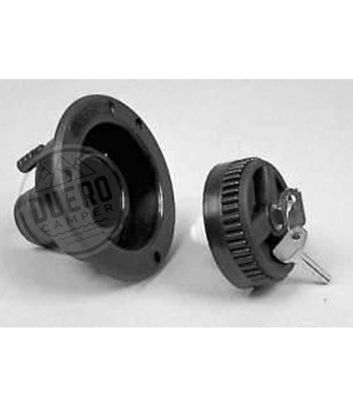 Boca, especial para instalar en el interior de los vehículos (muebles). Cuello de relleno corto, taladro para el montaje 85mm, brida de conexión para la manguera de 40mmØ y desbordamiento con conexión de 10mm (bloqueable).