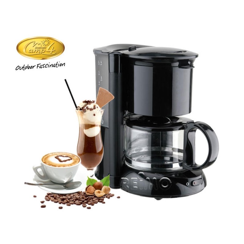 Cafetera 12v. Capacidad 600ml. Cafetera para 4-6 tazas, con placa calefactora automática, tanque de agua extraíble con indicador de nivel, porta filtro basculante con solo pulsar un botón, protección contra sobrecalentamiento. Diseño compacto, tan sólo 234 x 169 x 256mm Tamaño del embalaje 52 x 25 x 54cm. Peso: 2Kg