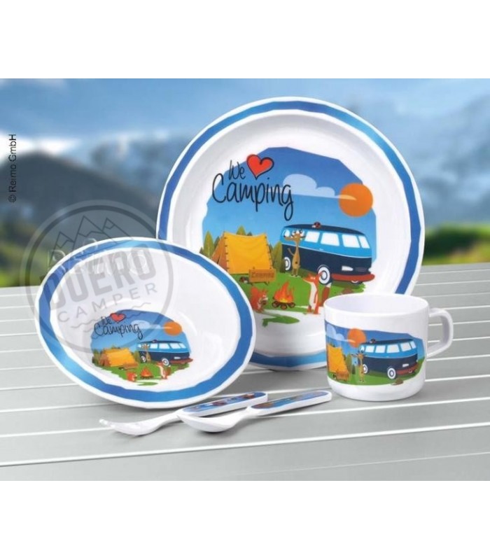 SET MENAJE PARA NIÑOS 5 PIEZAS, FURGONETA LOVE CAMPING