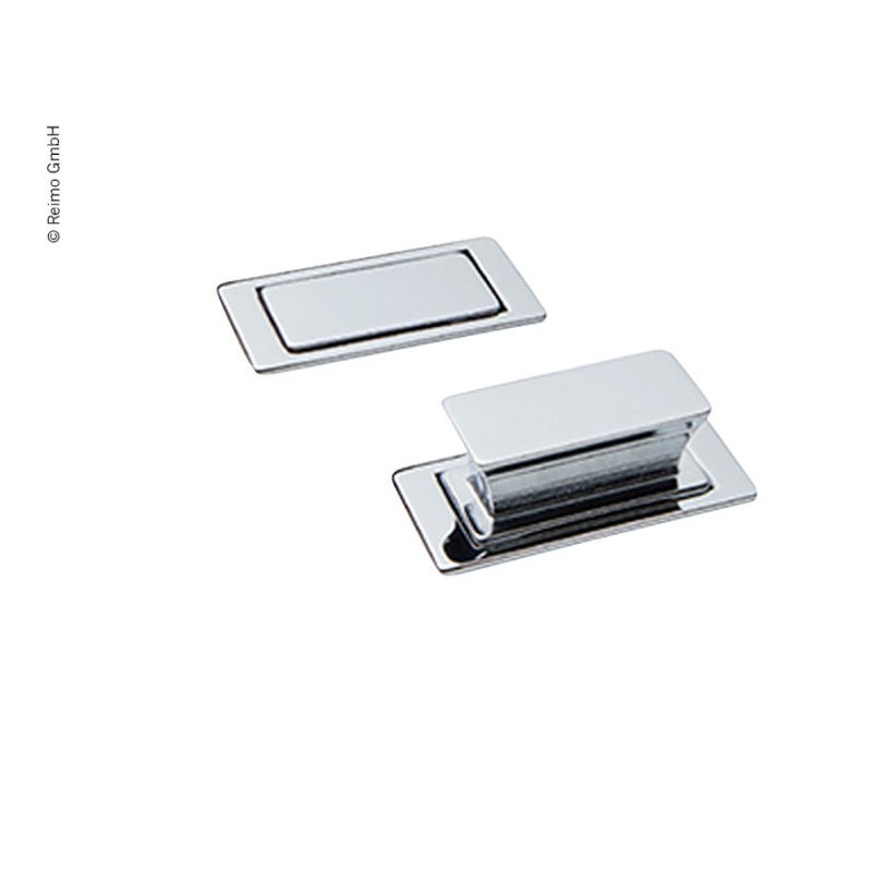 Tirador cromado cuadrado oculto. Estético tirador cromado, que se acciona con un simple toque, pensado para grosores de tablero entre 14 y 16mm.
